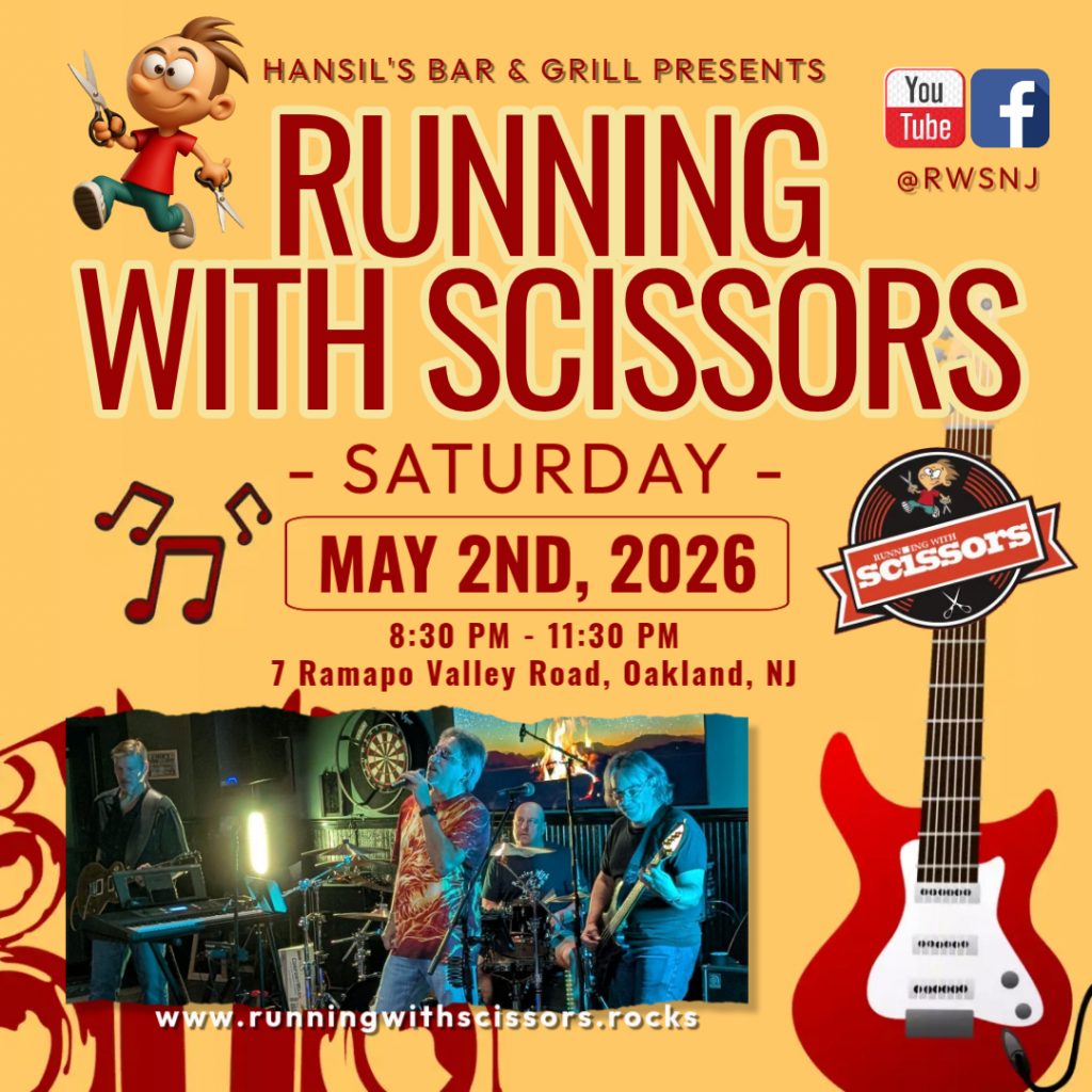 Hey there, and thank you for dropping by our band site. We are Running With Scissors, we’re a Classic Rock cover band based in Northern/Central New Jersey. We cover many of your favorite tunes from a number of different genres; classic, modern, and alternative rock/pop and rhythm & blues, you name it!